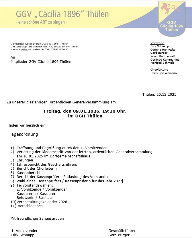09. Jan Generalversammlung GGV Thülen