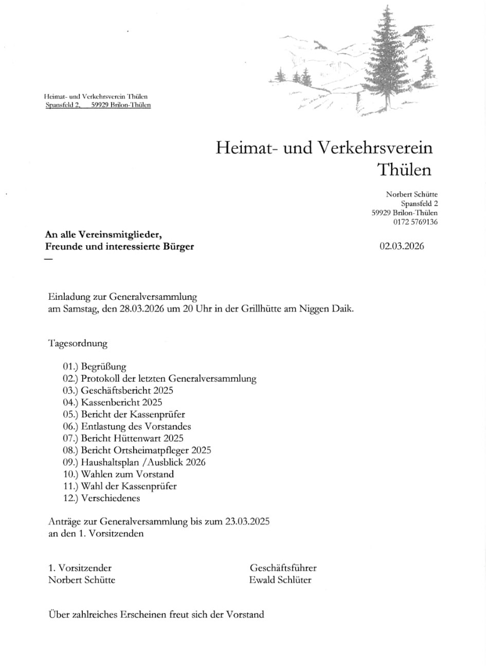 Die Einladung richtet sich an alle Vereine, alle Aktiven, eure Partner und Kinder, aber natürlich auch an alle karnevalsinteressierten Thülener und Thülenerinnen!
